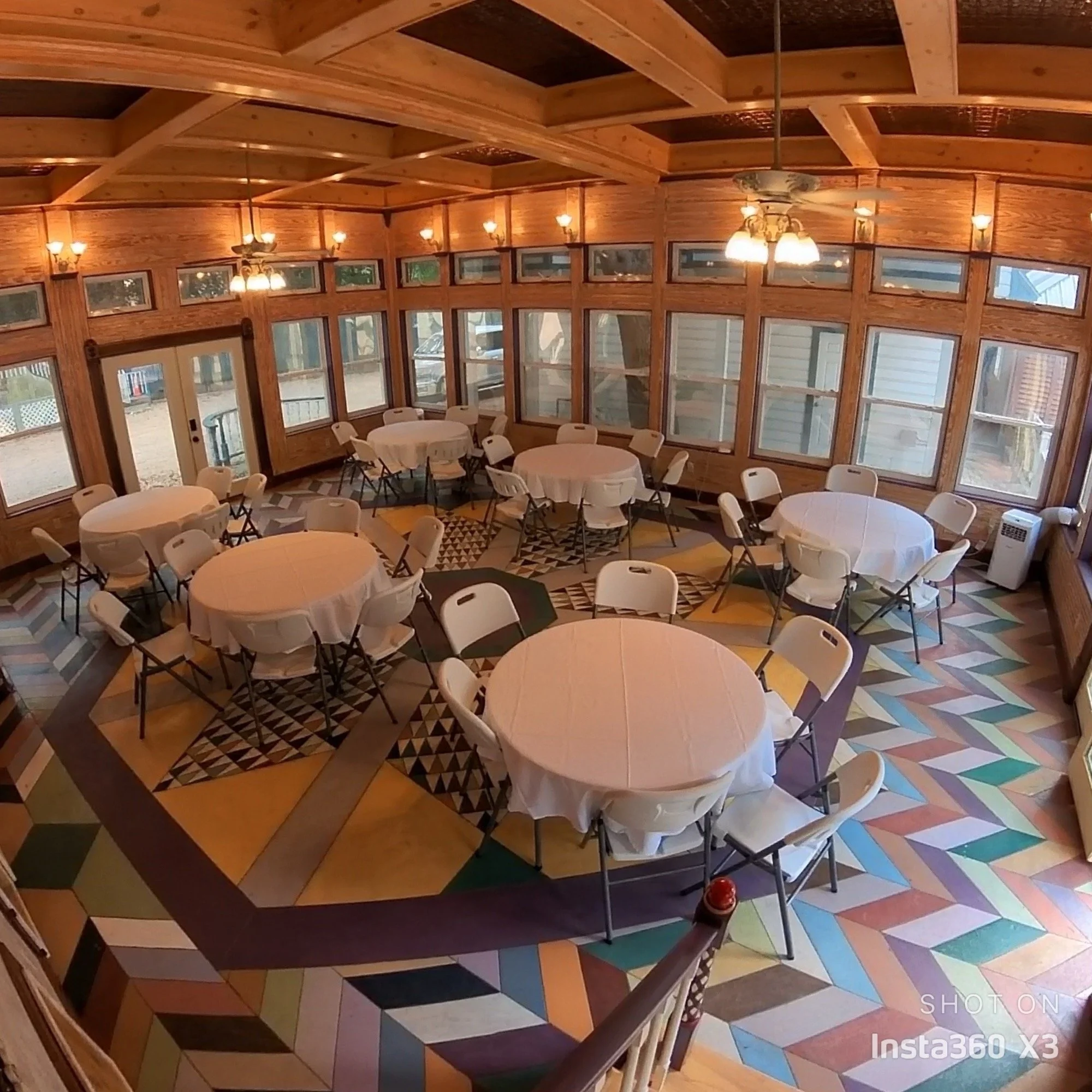 The spacious flex room features tables, chairs, and a buffet area, allowing you to tailor the setup to your needs, whether it's a seated meal, casual mingling, or an open space. With its artisan floor and natural light, the space will provide the perfect backdrop for your private gathering.